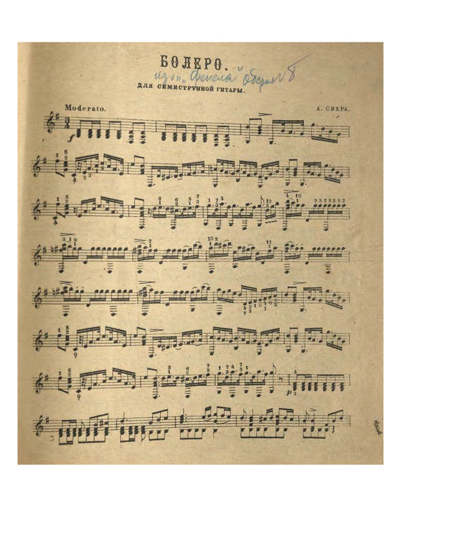 Part of Bolero [izʺ Fenella / Obera]; dli︠a︡ semistrunnoĭ gitary A. Sikhra