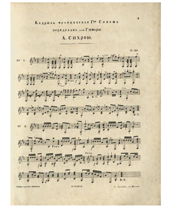 Part of Frant︠su︡zskai︠a︡ kadrilʹ i Valʹsʺ izʺ pi︠es︡ni Soloveĭ moĭ soloveĭ [pp. 1-2 missing]
