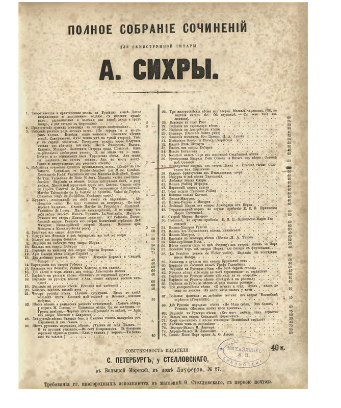 Part of Frantsuzskai︠a︡ kadrilʹ izʺ opery T︠Ss︡ampa [soch. Gerolʹd] i Russkai︠a︡ pi︠es︡ni︠a︡ Solovushko soch. Varlamova